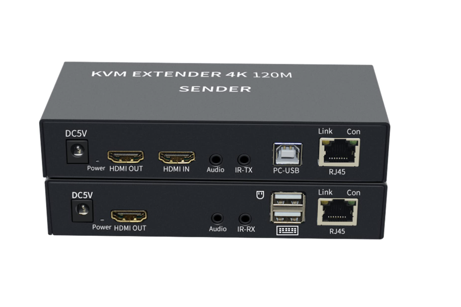4K HDTV 120M KVM Extender HDMI-Compatibile USB-A Tastiera Mouse 3.5mm AUX Lega di Alluminio su CAT6 RJ45 Lan Ethernet Extender (120M)
