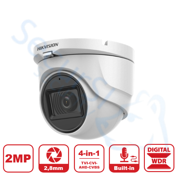 HIKVISION DS-2CE76D0T-ITMFS – Telecamera Analogica Turret 2MP 4in1 DWDR Coax Audio – Ottica Fissa (2.8mm)