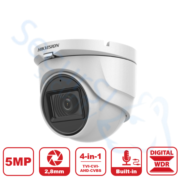 HIKVISION DS-2CE76H0T-ITMFS – Telecamera Analogica Turret 5MP 4in1 DWDR Coax Audio – Ottica Fissa (2.8mm)